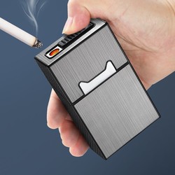 ولاعة كهربائية مقاومة للرياح قابلة لإعادة الشحن Usb عديمة اللهب ولاعات سجائر علبة معدنية من الألومنيوم مع جيب 20 ،